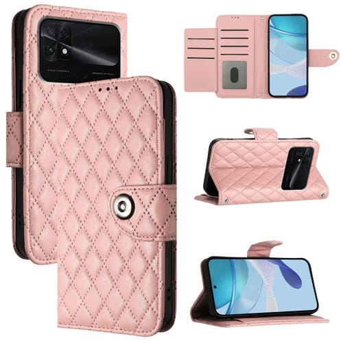 Para Redmi 10C / Redmi 10 2022 India Funda para Teléfono con Tapa de Cuero con Textura Rómbica y Cordón (Rosa Coral)