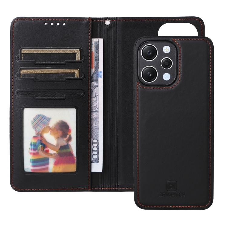 Para Redmi 12 4G Betopnice Bn-005 2 En 1 Funda de Teléfono de Cuero Genuino de Imitación Desmontable (Negro)