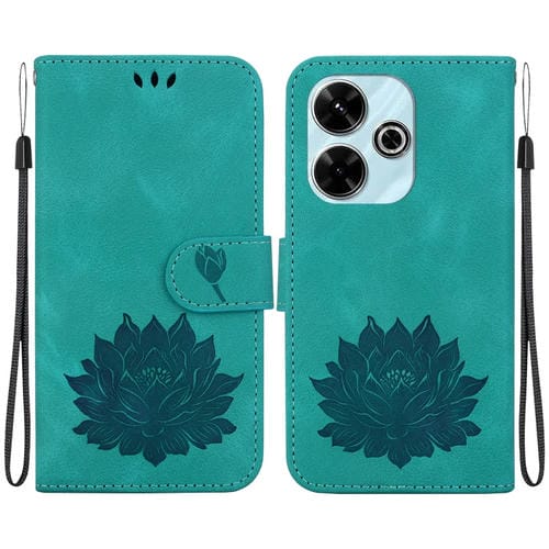 Para Redmi 13 4G Lotus Funda de Cuero En Relieve para Teléfono (Verde)
