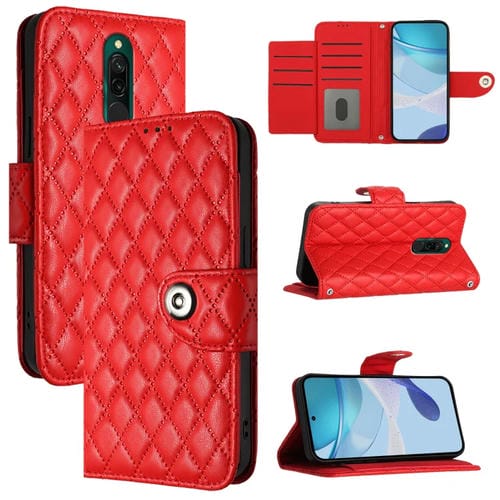 Para Redmi 8 Funda de Cuero con Tapa con Textura Romboidal y Cordón (Rojo)
