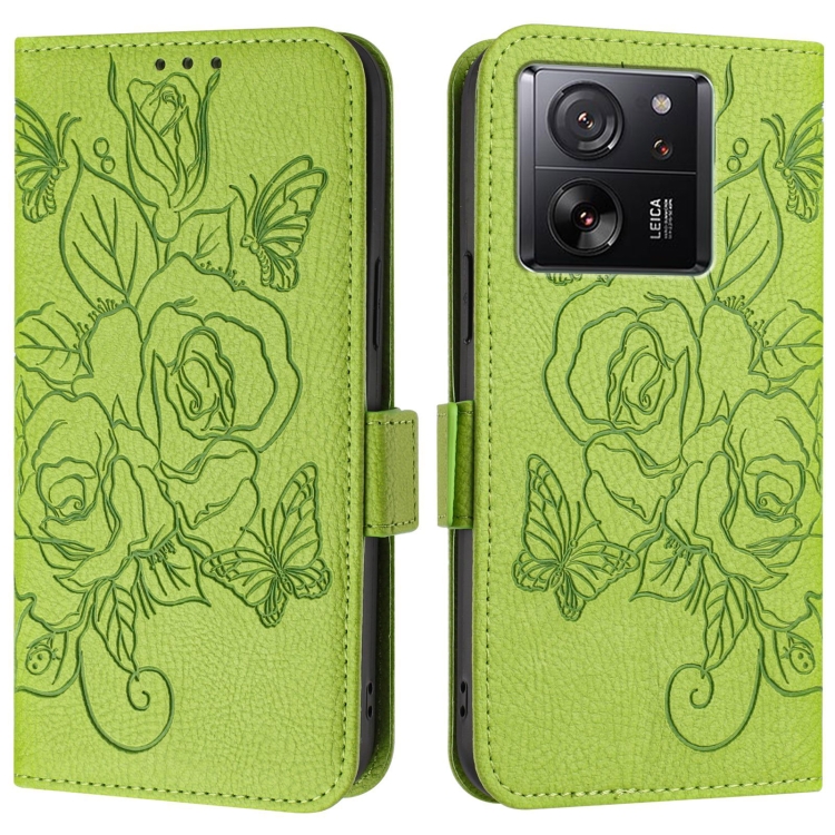 Para Redmi K60 Ultra / Xiaomi 13T / 13T Pro Funda de Cuero Antirrobo con Rfid En Relieve Rosa (Verde)