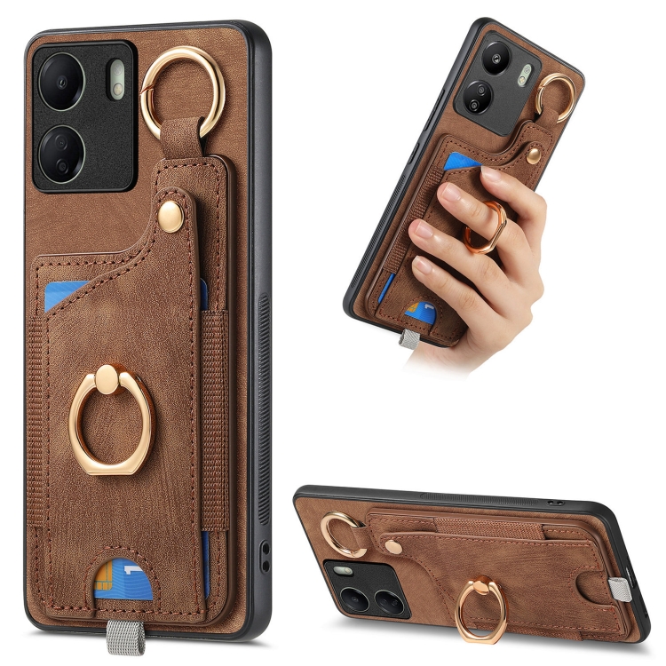 Para Redmi Note 10 4G Funda para Teléfono con Bolsa para Tarjeta con Anillo y Sensación de Piel Retro con Lazo para Colgar (Púrpura)