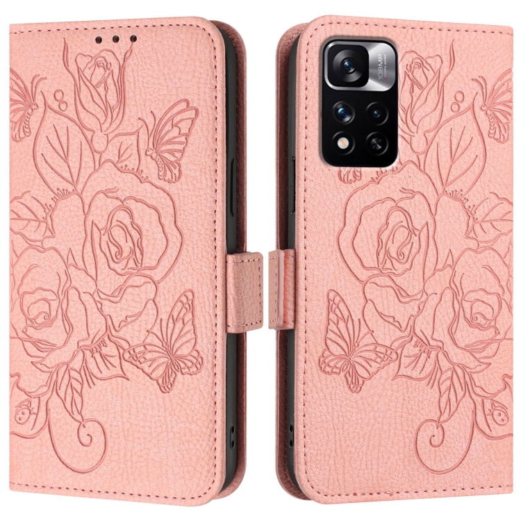 Para Redmi Note 11 Pro+ 5G / 12 Pro 4G Funda de Cuero Antirrobo Rfid con Relieve Global para Teléfono (Rosa)