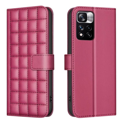 Para Redmi Note 11 Pro 5G / 4G Funda de Cuero para Teléfono con Textura Cuadrada Global (Rojo)