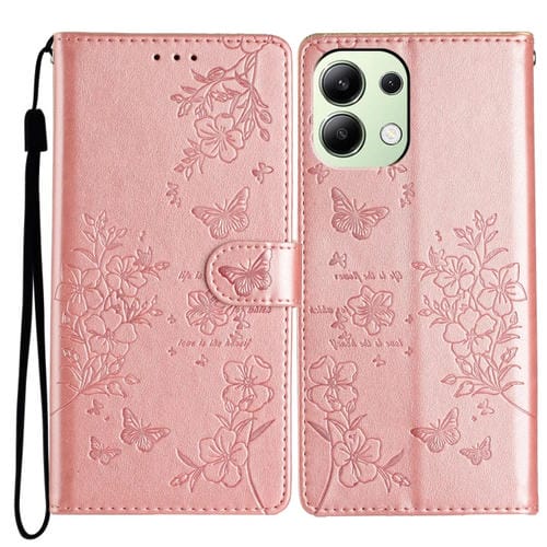 Para Redmi Note 13 4G Funda de Cuero para Teléfono con Mariposas y Flores (Oro Rosa)