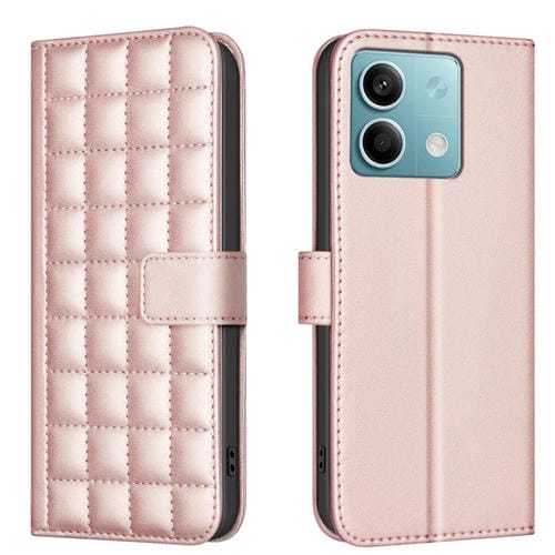 Para Redmi Note 13 5G Funda de Cuero con Textura Cuadrada (Oro Rosa)