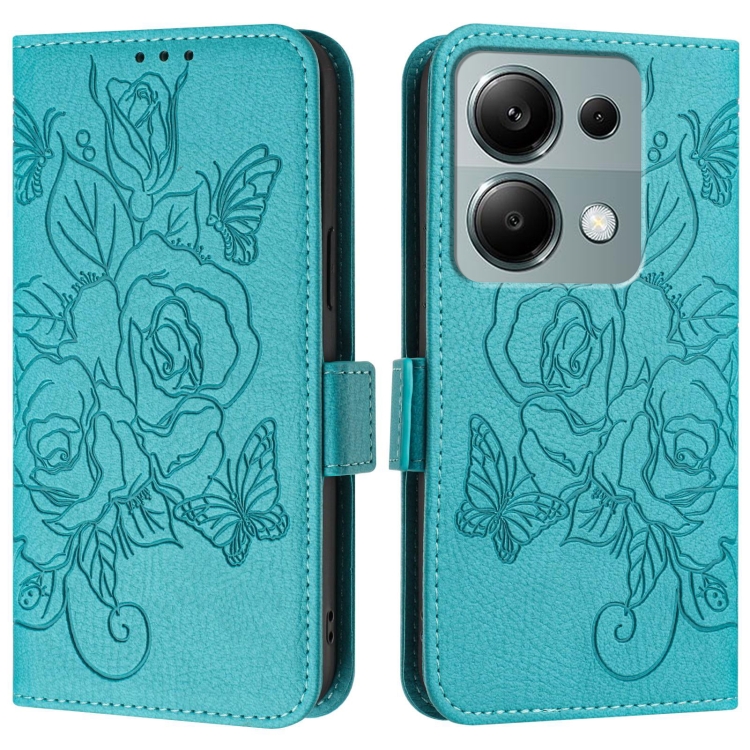 Para Redmi Note 13 Pro 4G Funda de Teléfono de Cuero Antirrobo Rfid con Relieve Global (Azul Claro)