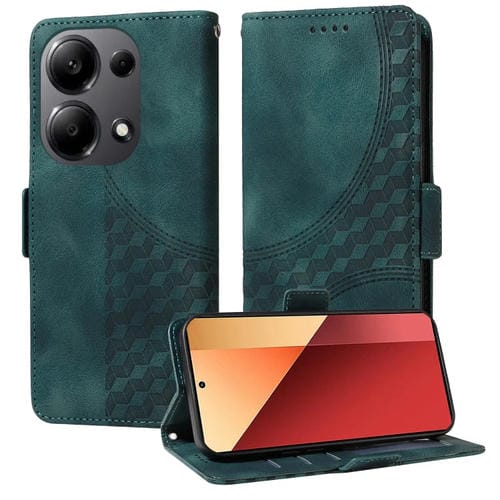 Para Redmi Note 13 Pro 4G Funda para Teléfono de Cuero Estrellado con Rombo En Relieve Global (Verde)