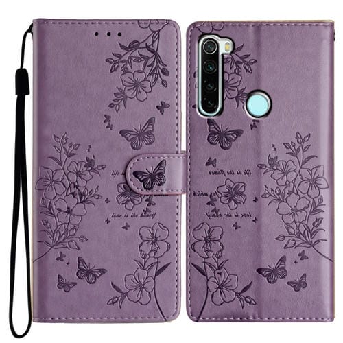 Para Redmi Note 8T Funda de Cuero para Teléfono con Mariposas y Flores (Púrpura)