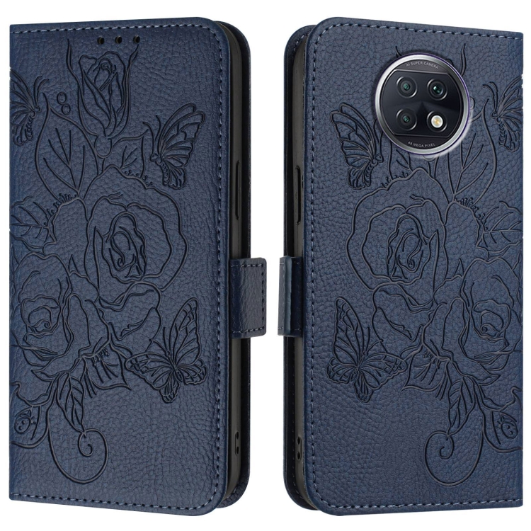 Para Redmi Note 9T Global Embossed Rose Rfid Funda de Cuero Antirrobo para Teléfono (Azul Oscuro)