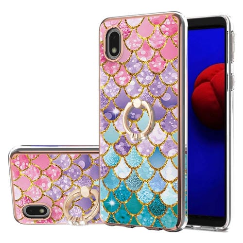 Estuche TPU Samsung Galaxy A01 Patrón Electrochaplating Soporte Anillo (Escamas Coloridas)