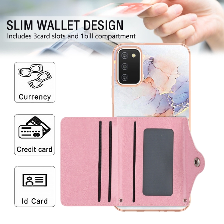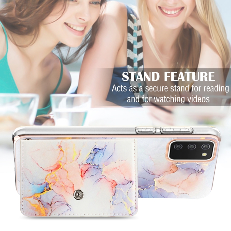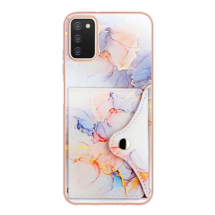Estuche para Teléfono Samsung Galaxy A02S Versión Estadounidense con Ranura para Tarjeta IMD Patrón Mármol (Blanco)