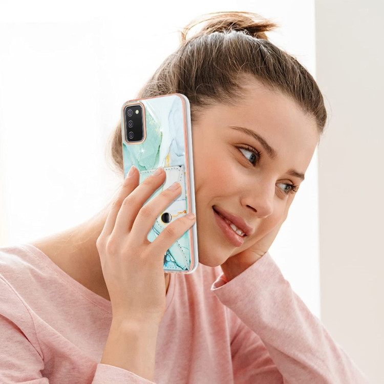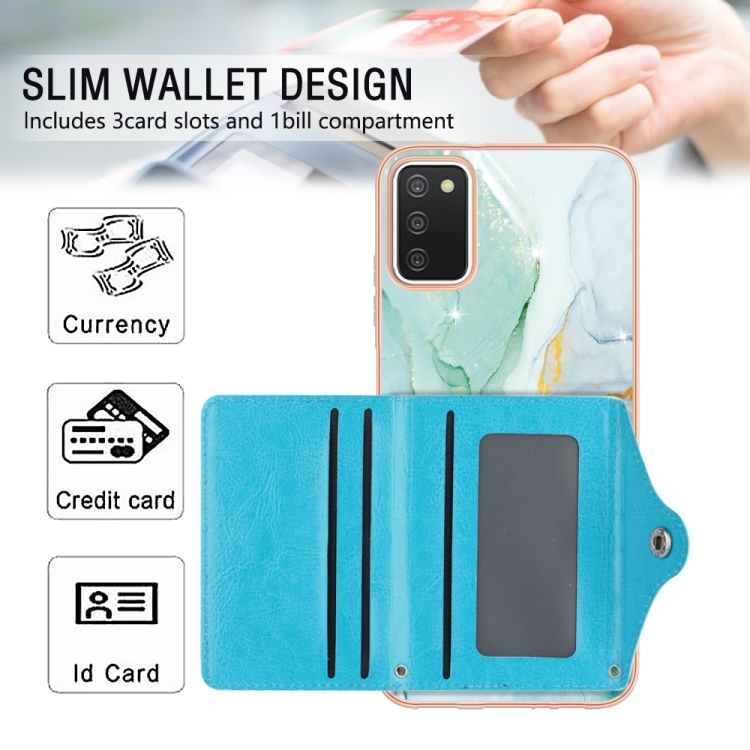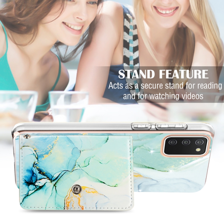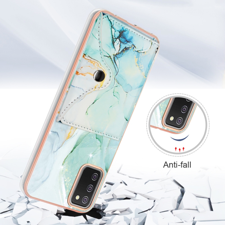 Estuche para Teléfono Samsung Galaxy A02S Versión Estadounidense con Ranura para Tarjeta IMD Patrón Mármol (Verde)