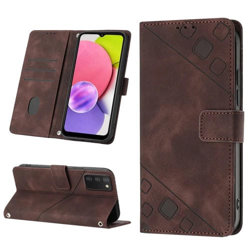 Estuche para Teléfono Samsung Galaxy A03S Cuero En Relieve Tacto de Piel (Marrón)