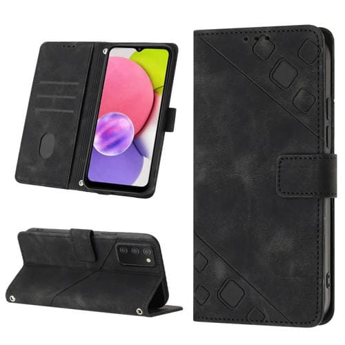 Estuche para Teléfono Samsung Galaxy A03S 166.6mm Cuero En Relieve con Tacto de Piel (Negro)