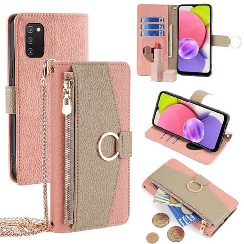 Funda de Cuero Crossbody para Samsung Galaxy A03S Litchi Texture (Rosa)