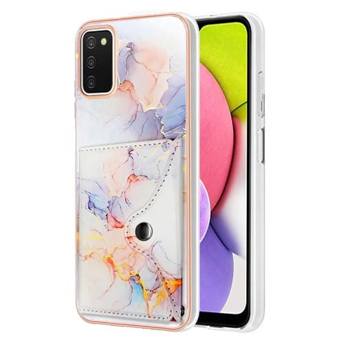 Estuche para teléfono Samsung Galaxy A03S versión estadounidense con ranura para tarjeta IMD patrón Mármol (Blanco)