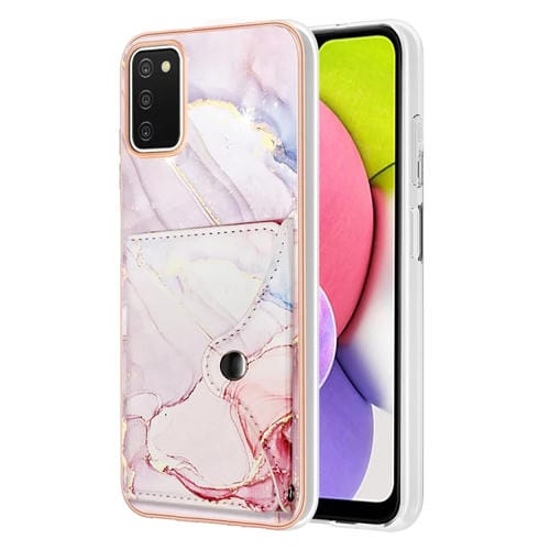 Estuche para Teléfono Samsung Galaxy A03S Versión Estadounidense con Ranura para Tarjeta IMD Patrón Mármol (Oro Rosa)
