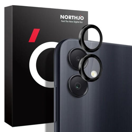 Lente de Cámara Northjo para Samsung Galaxy A05 4G Anillo de Metal Película de Vidrio Templado (Negro)