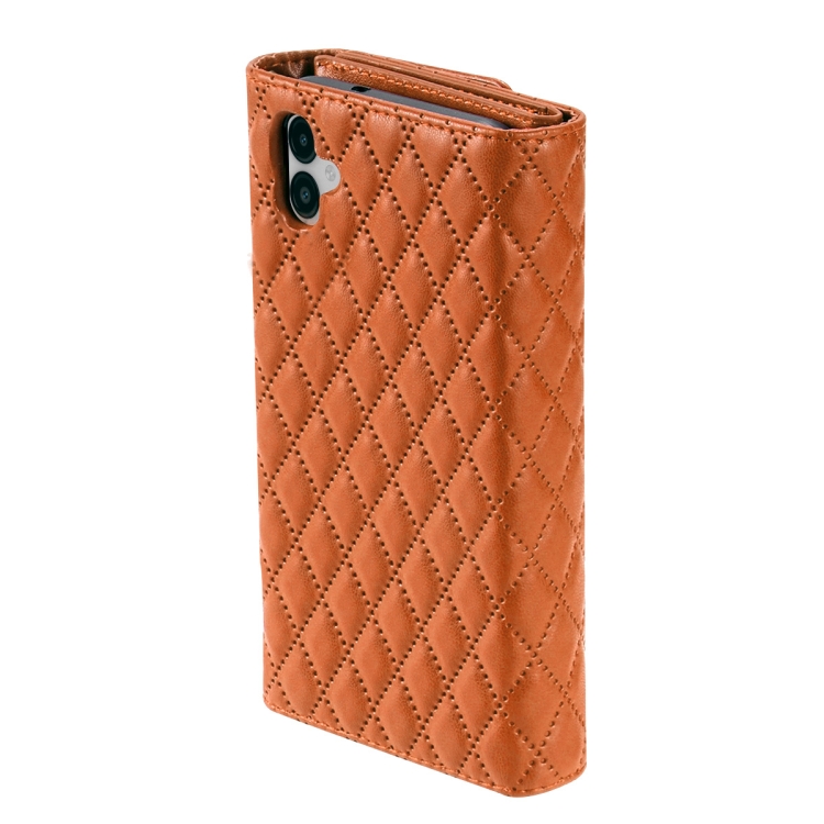 Estuche para Teléfono Samsung Galaxy A05 Cuero Rómbico con Billetera MultiTarjeta con Cremallera (Marrón)