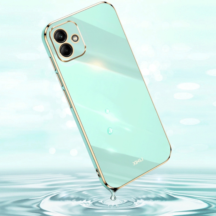 Estuche para Teléfono Xinli Samsung Galaxy A05 TPU Electrochapado 6D Borde Recto Soporte para Anillo (Rojo Hawthrn)