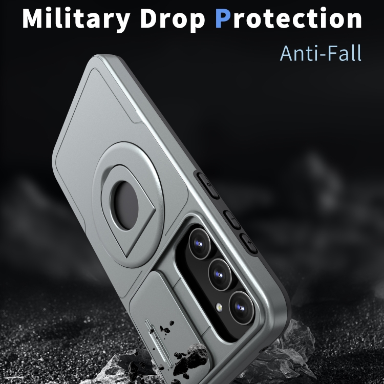 Funda Armor para Samsung Galaxy A13 con Camshield Magsafe y Ring Holder (Gris Titanio)