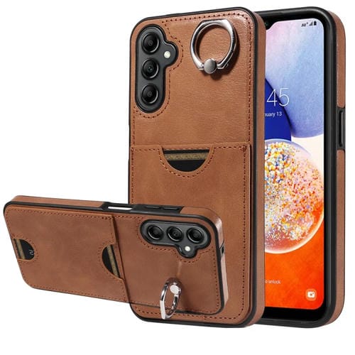 Funda para Teléfono Samsung Galaxy A14 4G 5G con Soporte Anillo y Ranura Tarjeta (Marrón)