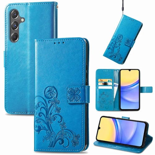 Funda para Teléfono Samsung Galaxy A15 Cuero Hebilla En Relieve Cierre de Cuatro Hojas (Azul)