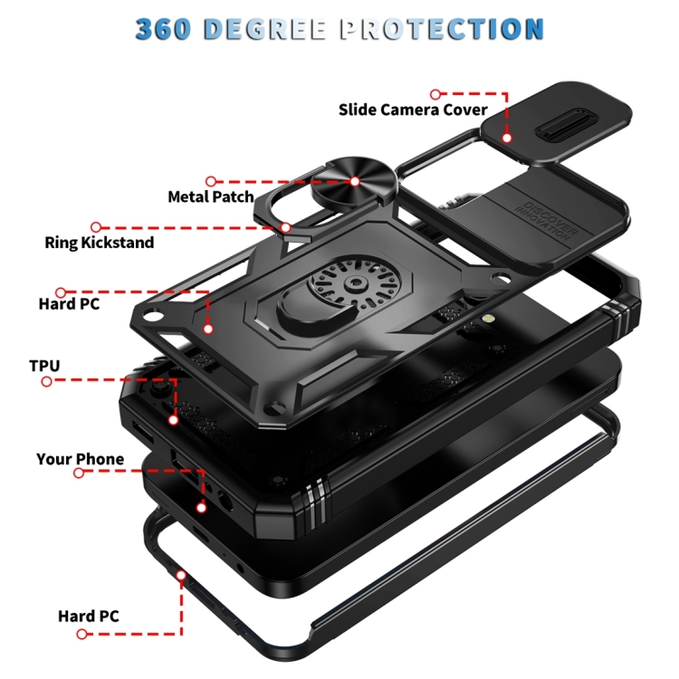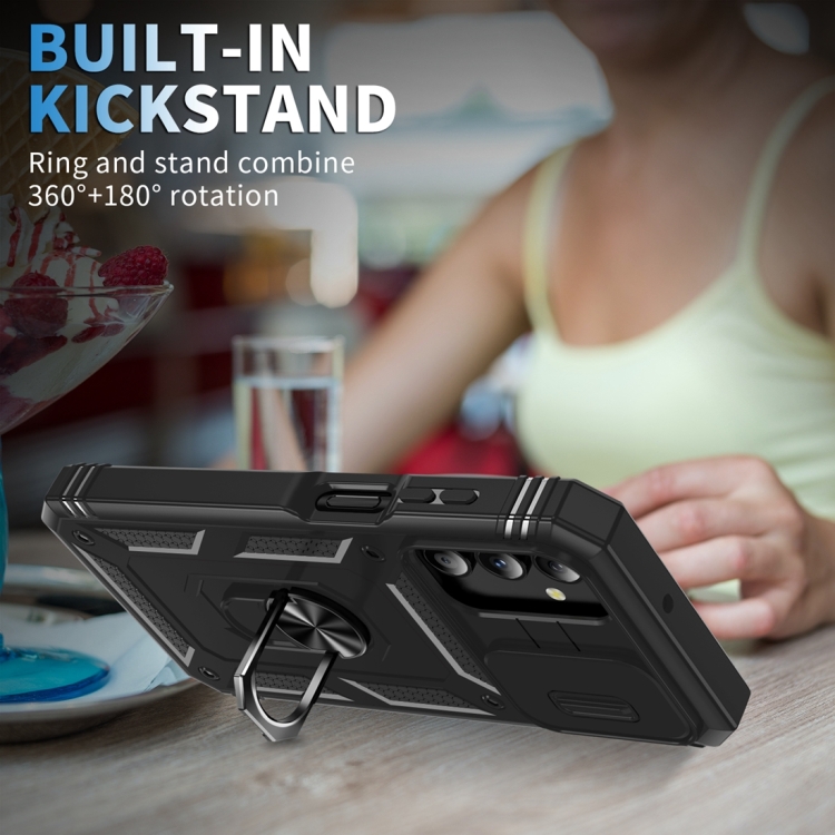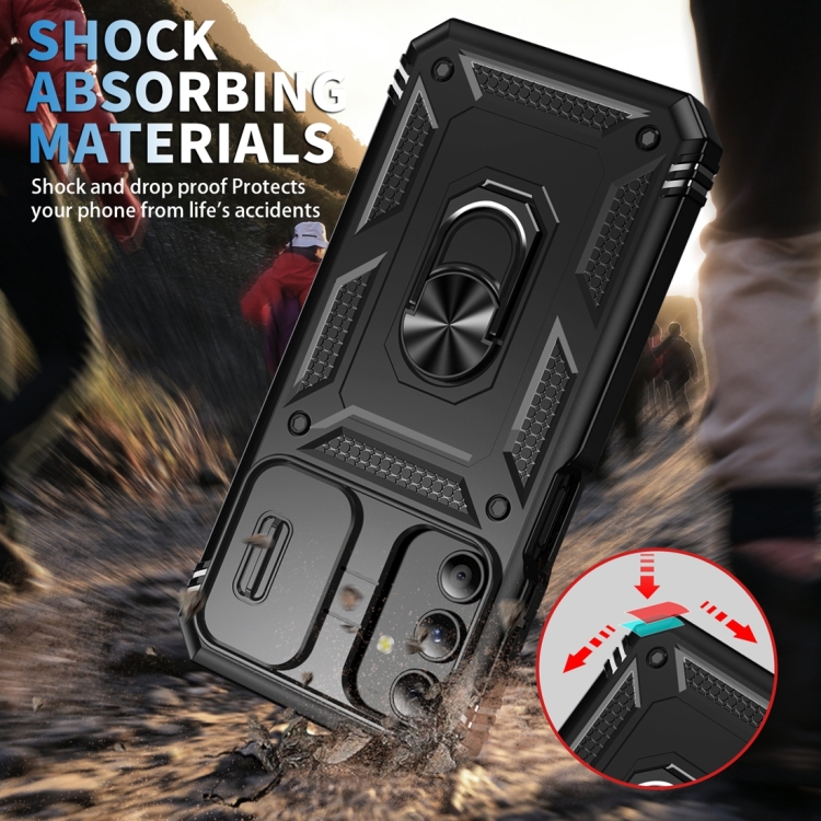 Funda para Samsung Galaxy A15 Sliding Camshield TPU con Soporte PC (Negro)