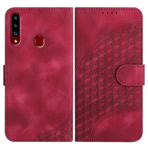 Funda para Samsung Galaxy A20S Yx0060 Cuero con Relieve y Cabeza de Elefante con Cordón (Rojo Rosa)
