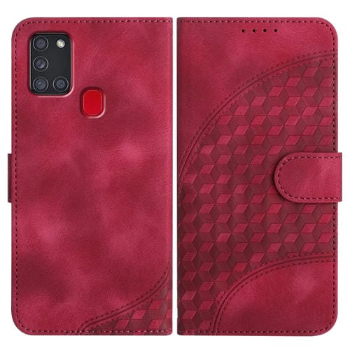 Funda para Samsung Galaxy A21S Yx0060 Cuero Relieve Cabeza Elefante con Cordón (Rojo Rosa)