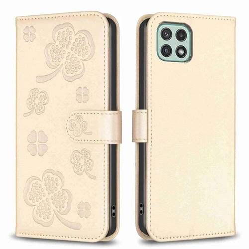 Funda para Samsung Galaxy A22 5G Cuero con Relieve de Cuatro Hojas (Dorado)
