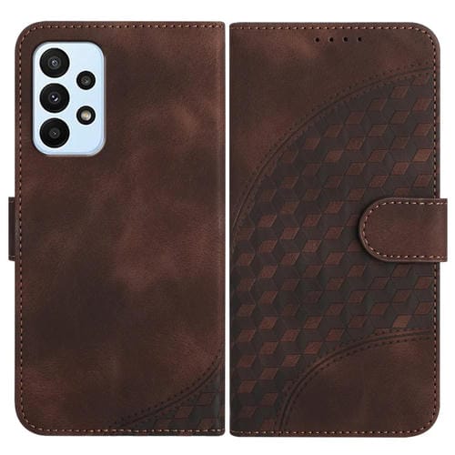 Funda de Cuero Samsung Galaxy A23 4G Yx0060 con Relieve y Cabeza de Elefante con Cordón (Café)