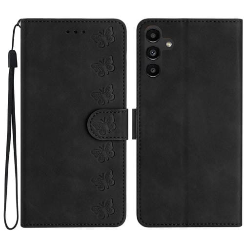 Caja de Teléfono para Samsung Galaxy A24 4G Seven Butterflies Cuero En Relieve (Negro)