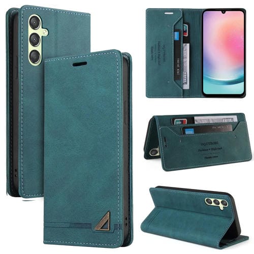 Funda de Cuero para Samsung Galaxy A24 5G Skin Feel con Tapa Horizontal Cepillo Antirrobo y Soporte (Azul)