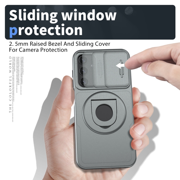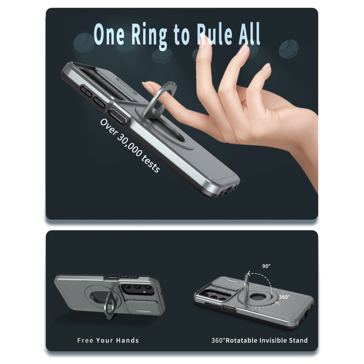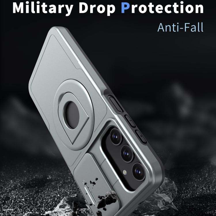 Funda Armor para Samsung Galaxy A24 con Camshield Magsafe Ring Holder (Gris Titanio)
