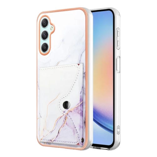Estuche para Teléfono Samsung Galaxy A25 5G con Ranura para Tarjeta Imd Patrón Mármol (Blanco y Morado)
