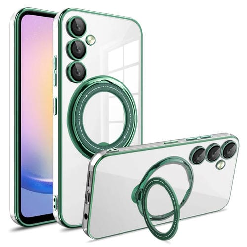 Estuche para Teléfono Samsung Galaxy A25 5G Galvanoplastia Soporte Rotación 360° (Verde Oscuro)