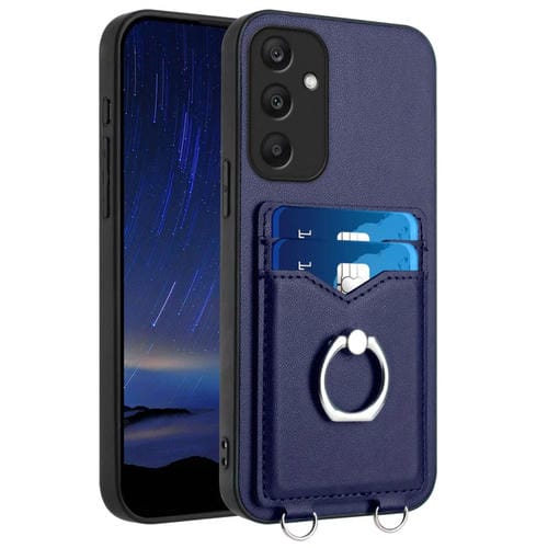 Estuche para Teléfono Samsung Galaxy A25 5G Global R20 con Soporte para Tarjeta y Anillo (Azul)
