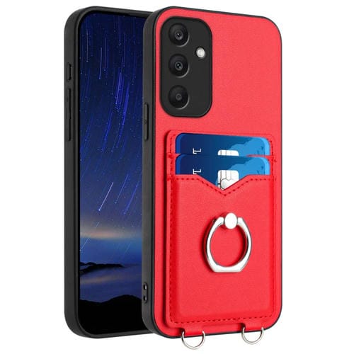 Estuche para Teléfono Samsung Galaxy A25 5G Global R20 con Soporte para Tarjeta y Anillo (Rojo)