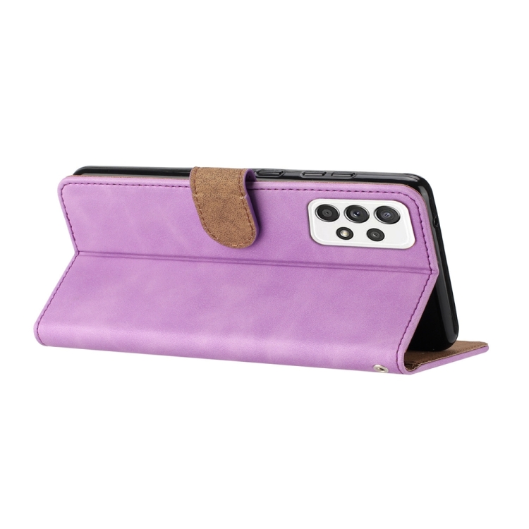Funda para Samsung Galaxy A32 4G Seven Butterflies Caja de Teléfono de Cuero En Relieve (Púrpura)