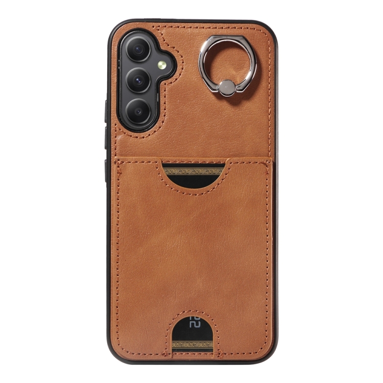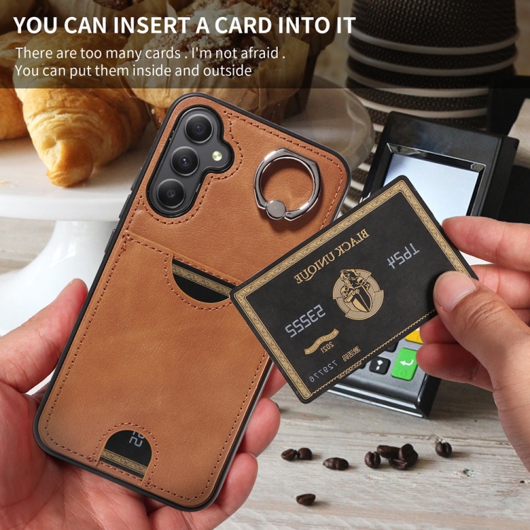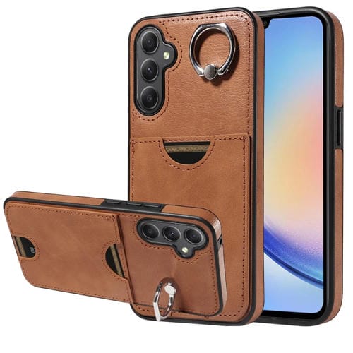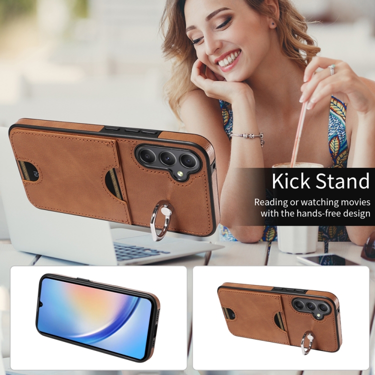 Funda para Teléfono Samsung Galaxy A34 5G con Soporte para Anillo y Ranura para Tarjeta (Marrón)