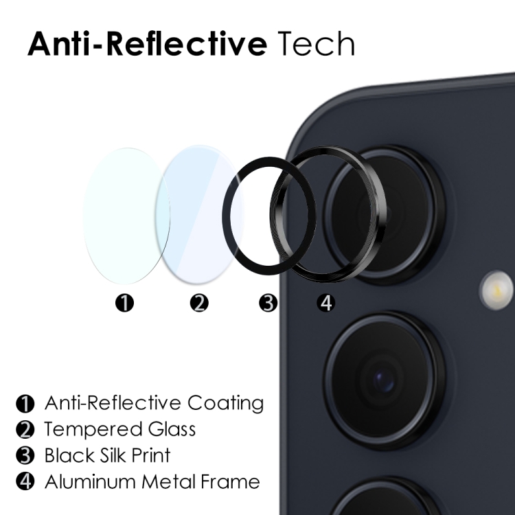 Lente de Cámara Northjo para Samsung Galaxy A35 5G Película de Vidrio Templado con Anillo de Metal (Negro)