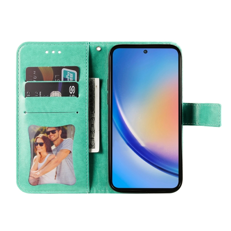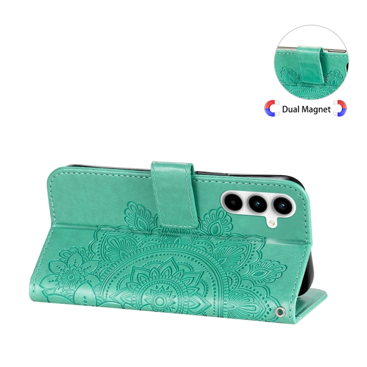 Funda para Teléfono Samsung Galaxy A35 Cuero Estampado Flores 7 Pétalos (Verde)