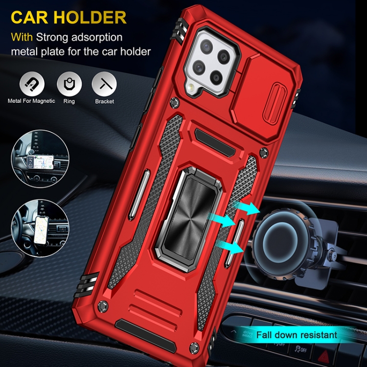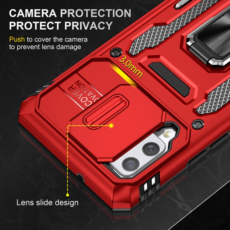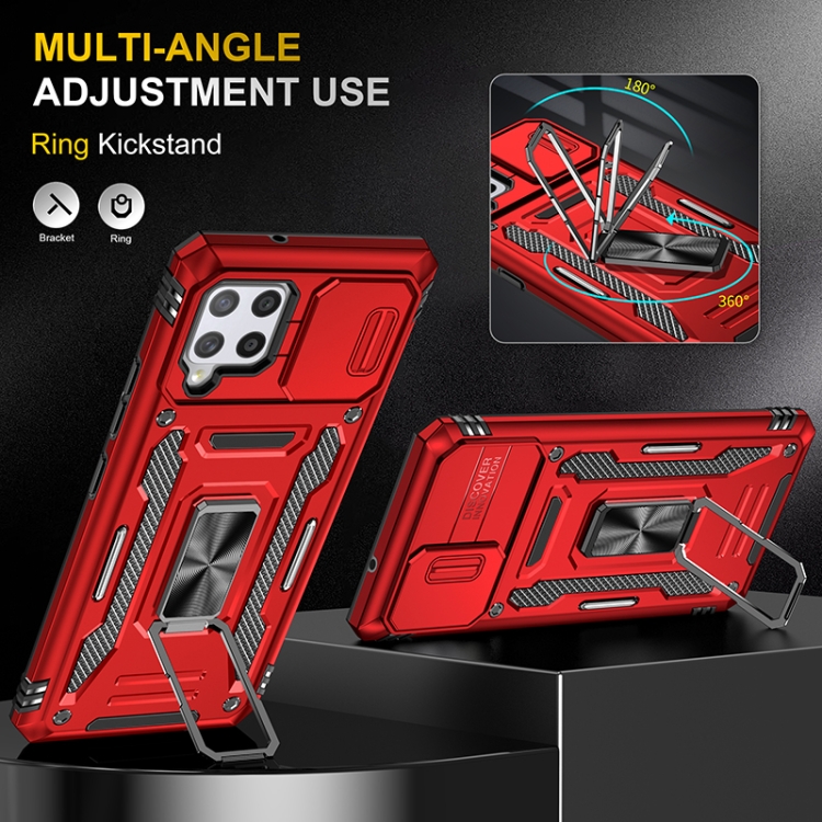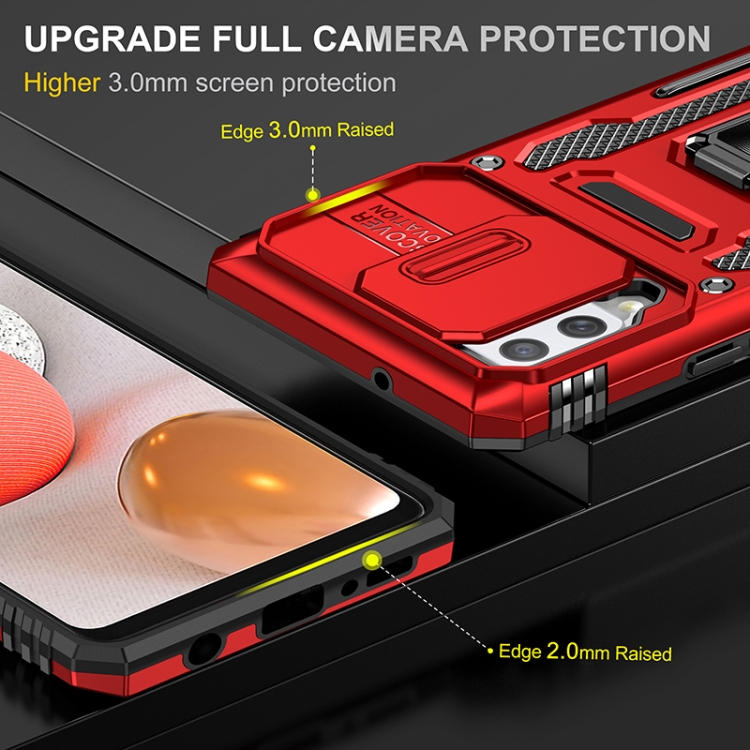 Funda Armor PC + TPU con Protector de Cámara para Samsung Galaxy A42 5G (Rojo)