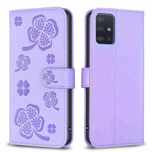 Funda de Cuero Samsung Galaxy A51 4G con Relieve de Cuatro Hojas (Púrpura)