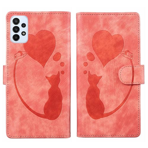 Estuche para Teléfono Samsung Galaxy A52 5G A52S 5G Cuero Relieve Gato Corazón Bolígrafo (Naranja)
