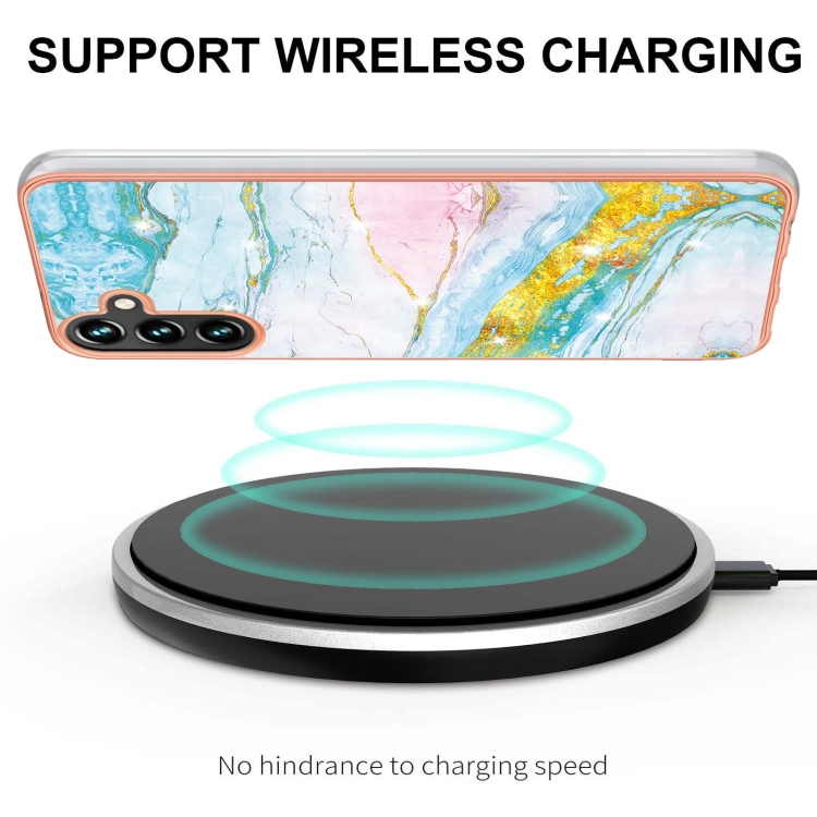 4. Diseño lindo y elegante: apariencia de patrón de mármol IMD galvanizado fresco y elegante, protege con estilo su teléfono.