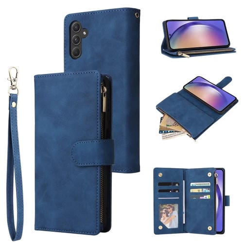 Funda de Cuero Samsung Galaxy A55 5G con Billetera y Cremallera Multifuncional (Azul)