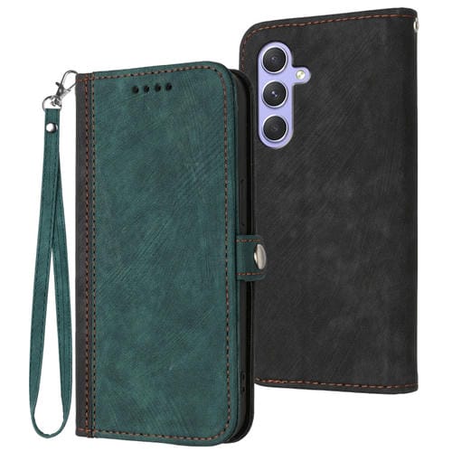 Funda para Teléfono Samsung Galaxy A55 Cuero con Correa de Mano Doble Pliegue Hebilla Lateral (Verde Oscuro)